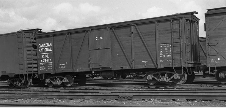 CN 405417 36'0" steel underframe wooden box car 5 foot door. 2472