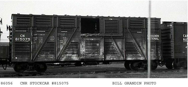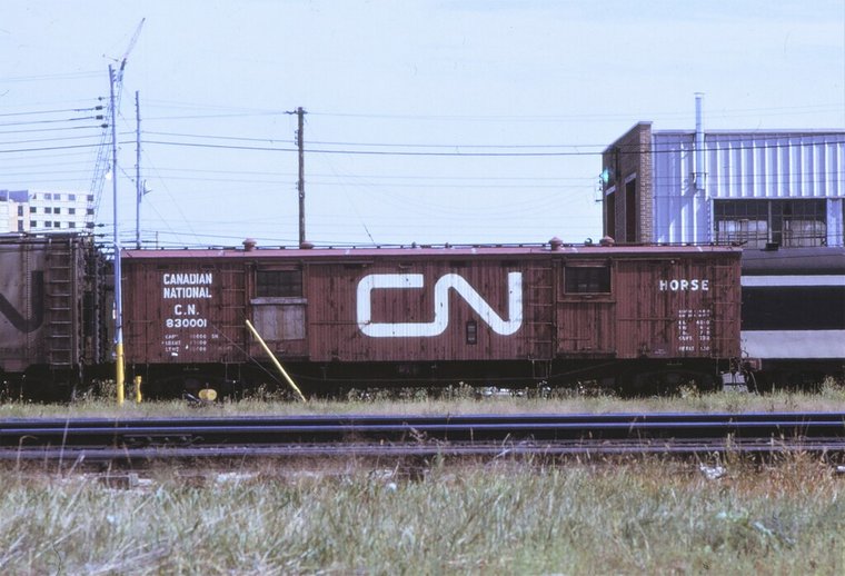 CN 168104 a 48 foot steel underframe 16 stall horse car. One of only