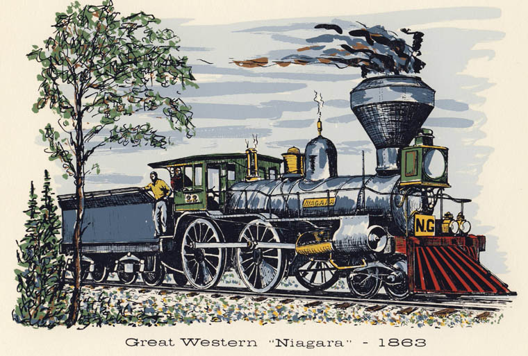 GWR 22 Niagara Built Lowell 108 1851 Note: N.G. sign tells switchtenders approaching train
