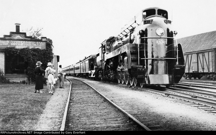 Brand new U-4 6400 backing into Bonaventure station for special train for Canadian Railway Centenary. July 1936.