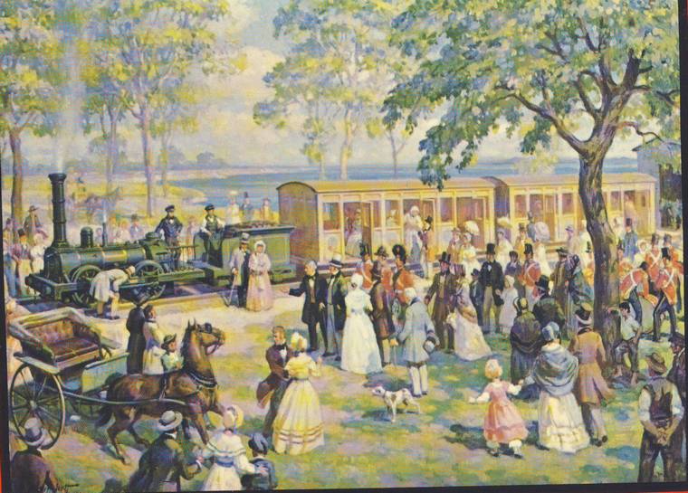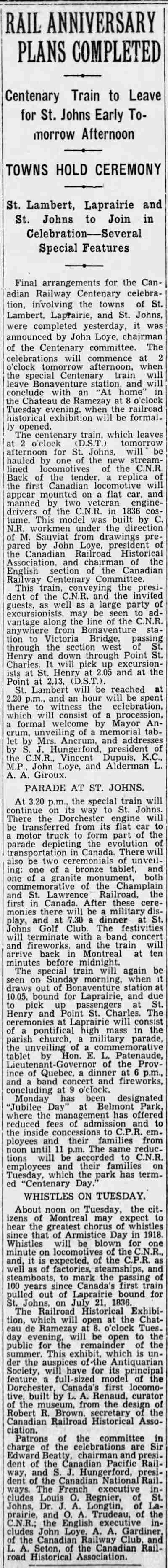 Passenger Special at unknown location. July 1936 W.G.Fancher Dorchester with first passenger train Champlain