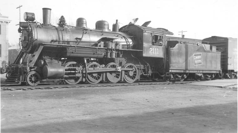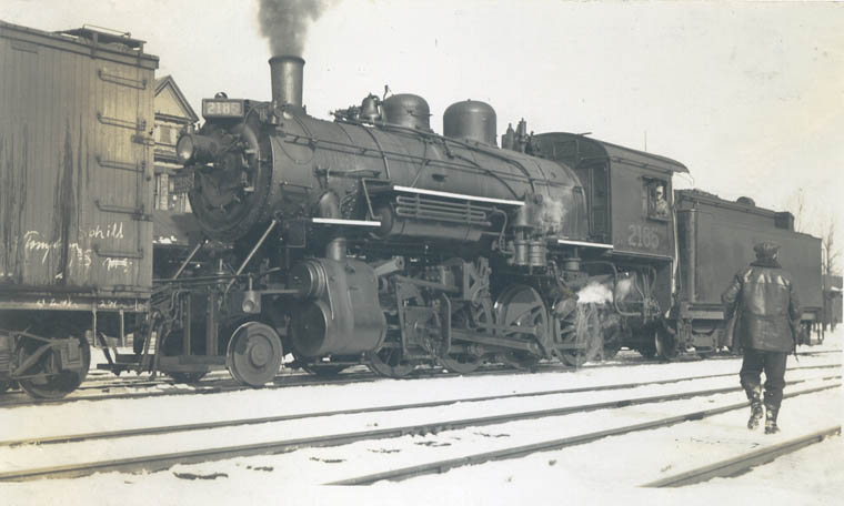 2111 at Armstrong. Note the steel boxcar next to engine not in photo below same date. 3/12/1941