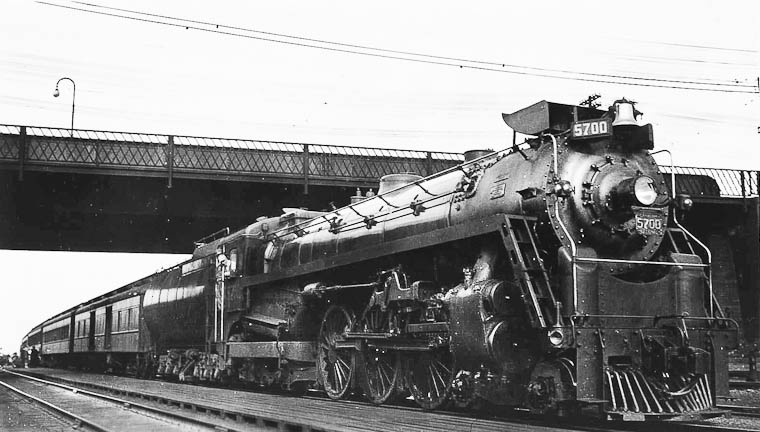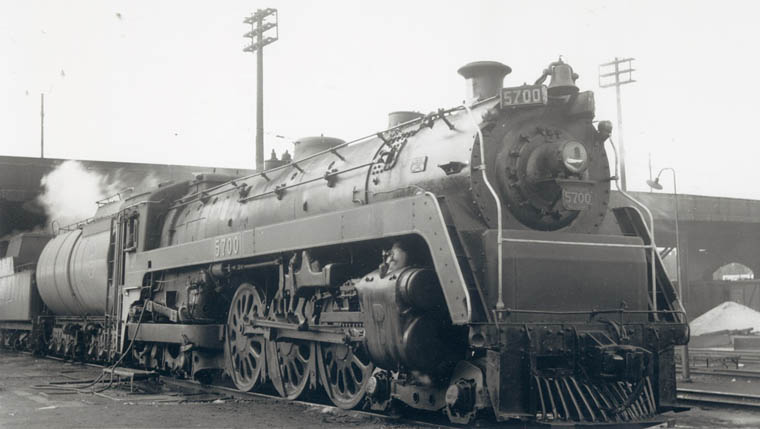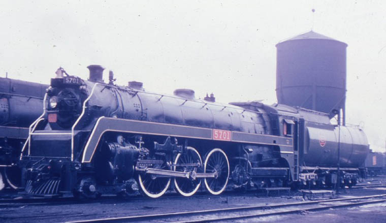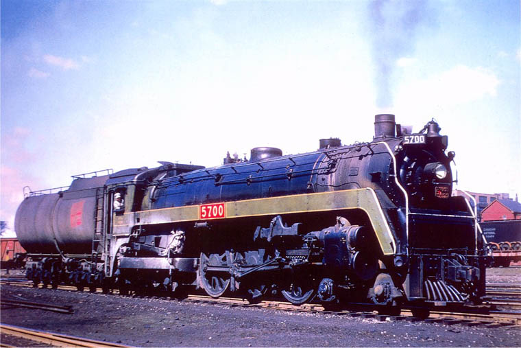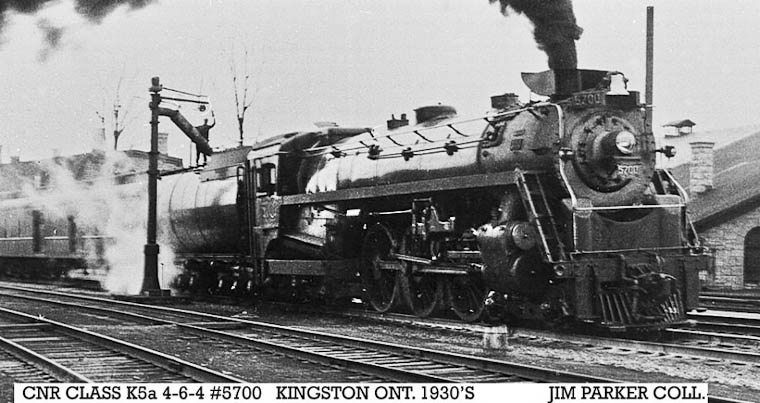 K-5-a 4-6-4 Hudson 5700-5704 Only five of these Hudsons were owned by the CNR unlike the competition (CPR) which had 65, the second largest fleet in North America after the New York Central. Built especially for the very competitive Montreal-Toronto passenger service these engines performed well with short trains however, when traffic grew beyond nine cars they could not handle the fast schedule required. They were replaced by Northern 4-8-4's and re-assigned to Toronto-London-Sarnia/Windsor service. Cylinders 23" x 28" Drivers 80" Boiler