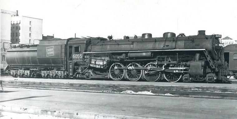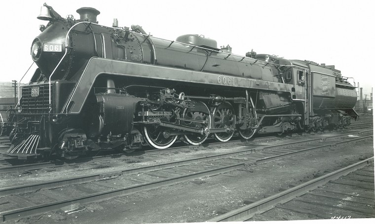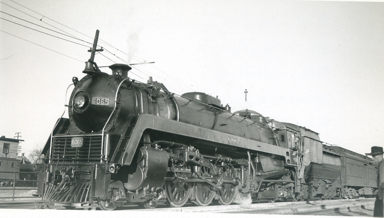 6027 with smoke deflectors a.k.a. elephant ears. Montreal 4/1944 Gene Connell