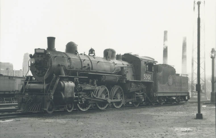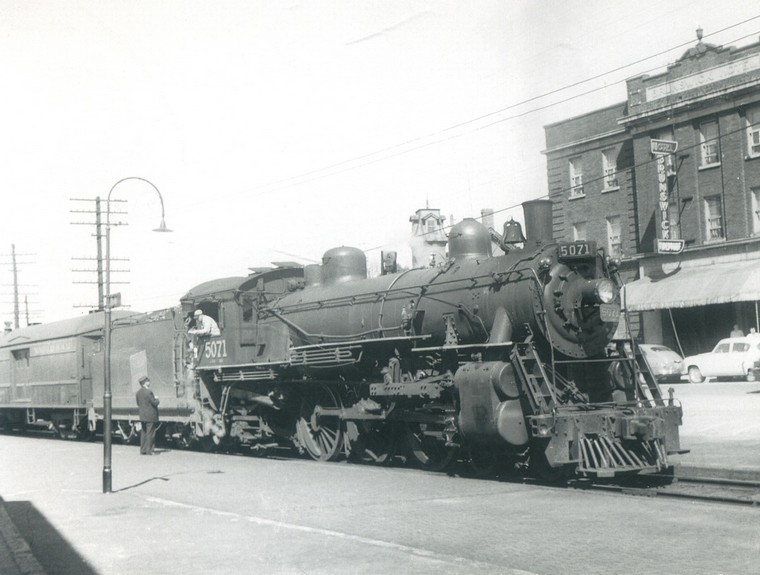 Steam excursion from Montreal (Central Station). Sherbrooke, QC. Saturday, October 13, 1962. Note: 5107 has been preserved since 1971 at Ron Morel Memorial Museum in Kapuskasing, Ontario.