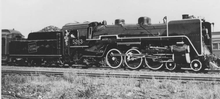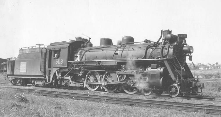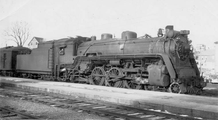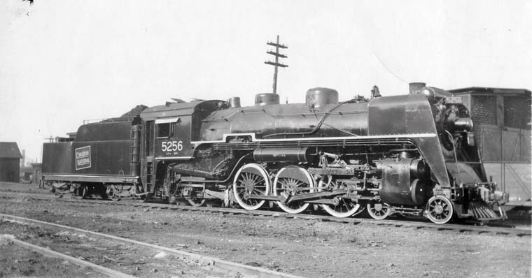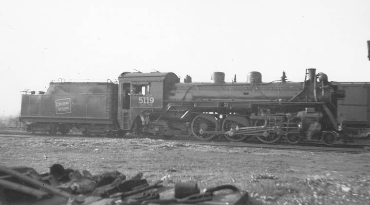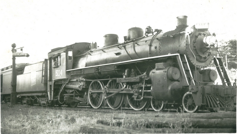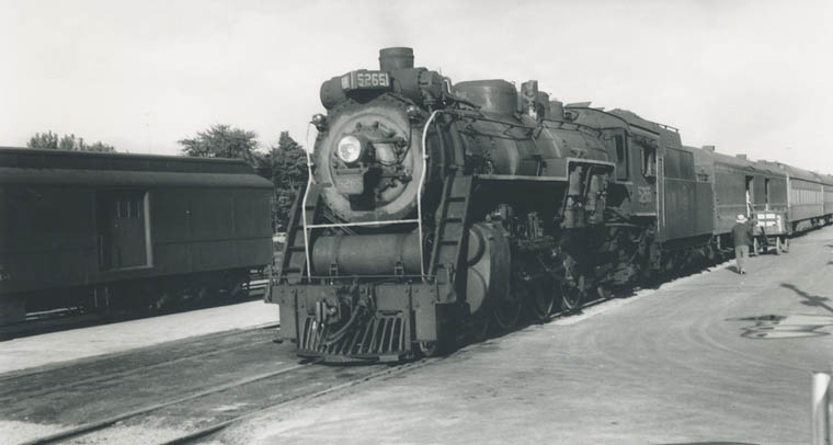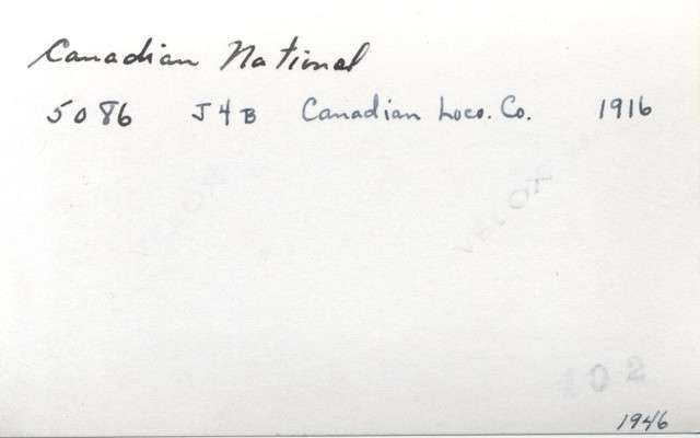 5086 (ex CGR 464) on passenger at unknown location in 1946. Bud Laws Collection. J-4-d 5100-5124 twenty five engines built new for CNR.