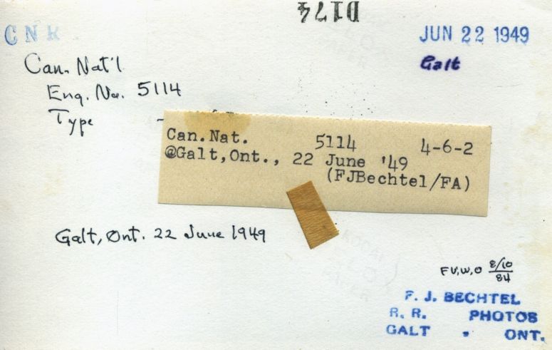 5114 on local passenger train at Galt, Ont. June 22, 1949