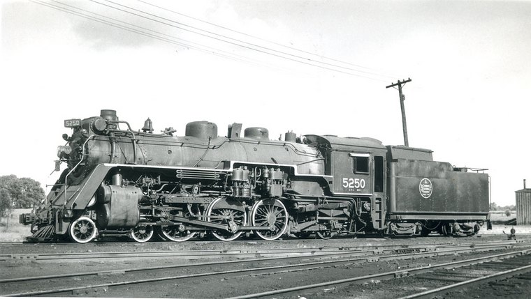 The other side of 5140. Duluth, Minnesota. 7/21/1954 Rennie Neider/Joseph Testagrose Collection J-7 class 5250-5294 built by MLW for CGR 1918-19 ex 478-522