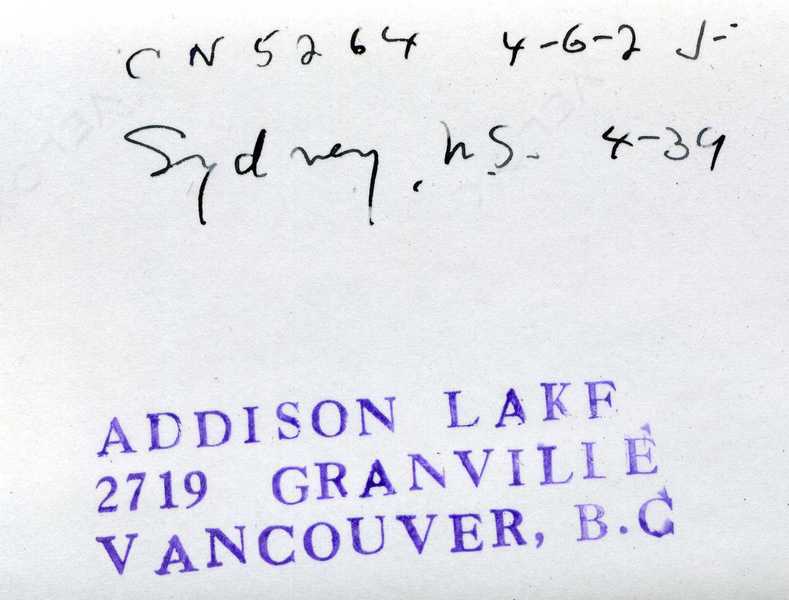 5260 Sydney, NS August 12, 1937 Andy Mc.Culluch Collection/Walter Pfefferle Collection