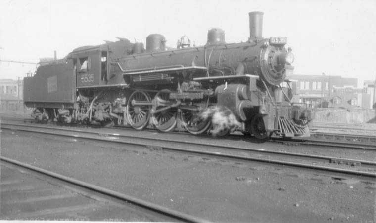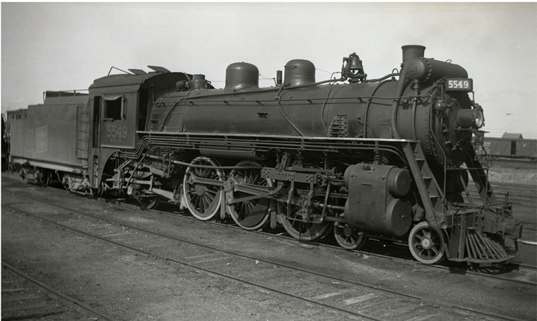 K-2-b 5549 (ex CGR 450) MLW #54761 1914 Saskatoon, SK July 31, 1942 Jim Parker Collection K-3 Cyl. 23" x 28" Drv. 73" Press. 195 lbs. t.e. 34%