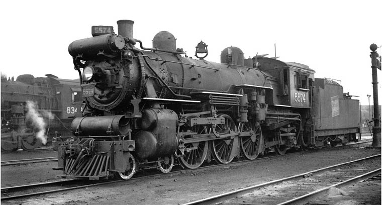 K-3-a 5574 (ex GTR 238) MLW #51917 1913 Mimico shop track. Toronto, August 30,1956 Jim Parker