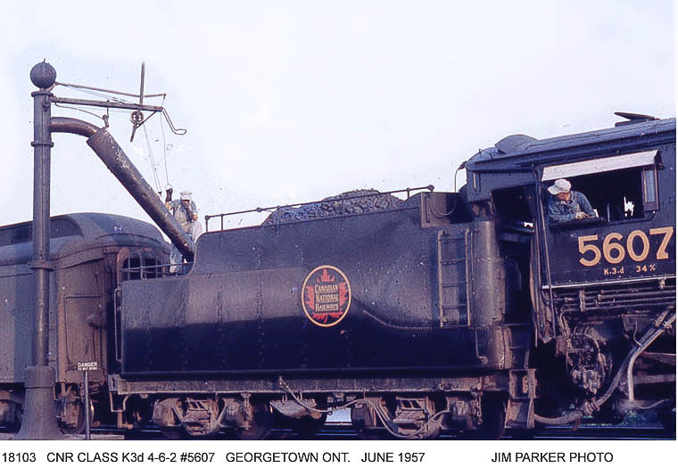 5296 with smoke deflectors taking water at James Street station, Hamilton. Bud Laws Collection