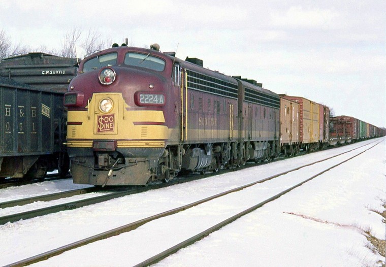 SOO 2224-A and a B unit seen here at Guelph Jct. February