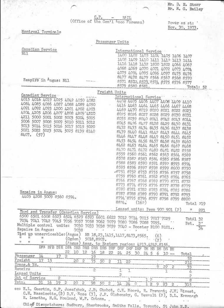 CP Rail July 1968 Assignment of Power St.Luc 1968 Assignment of Power St.Luc 1973