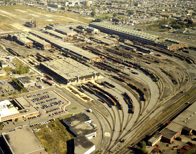 Canadian Pacific Railway Montreal Facilities Angus Shops, Glen Yard, Hochelaga, New Shops (Delorimer), Outremont Yard, St. Luc Yard. St.Luc Transload Lachine IMS Aerial of Montreal 1947 (zoomable link) Delorimier Shops 1883-1904 Angus Shops 1904-1992 Angus Shops redevelopment projects. Systematic Control of Locomotive Repairs 1920