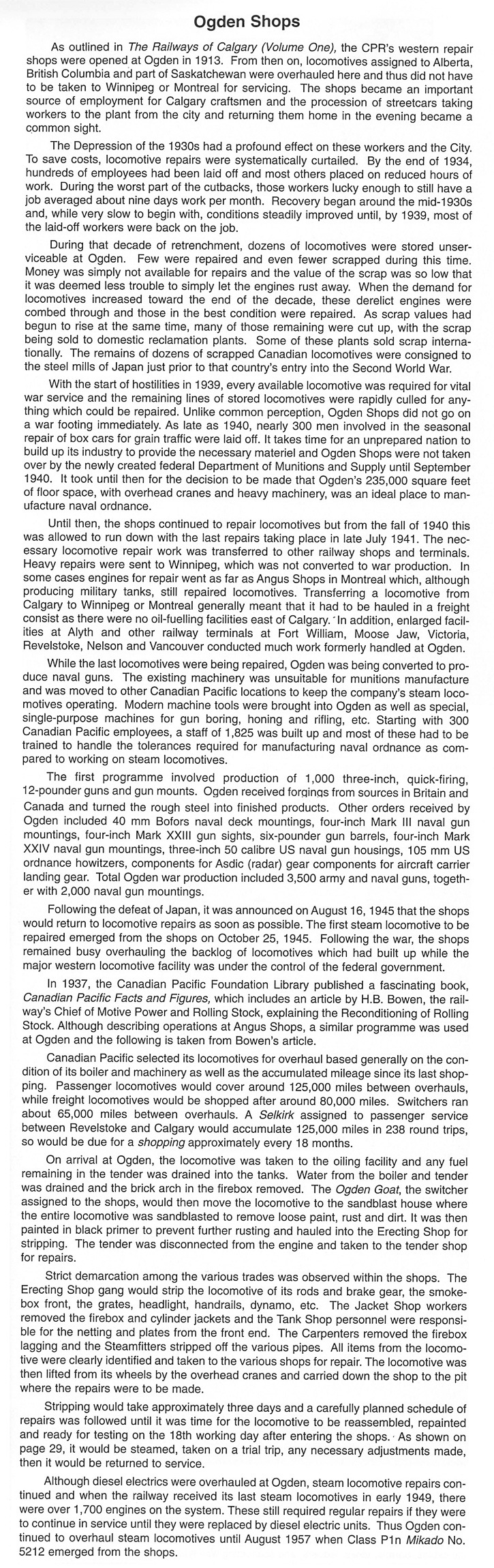 Above section: The Railways of Calgary, Vol. 2 BRMNA. Note: P1n class 5212 was the last engine to get a Number One machine job at Ogden being outshopped August 1957. Diesel Era