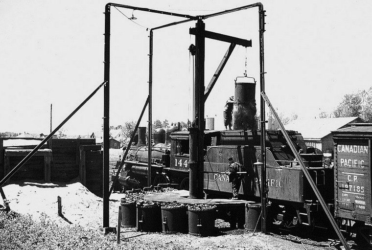 144 coaling up. Derrick is air operated supplied by locomotive.