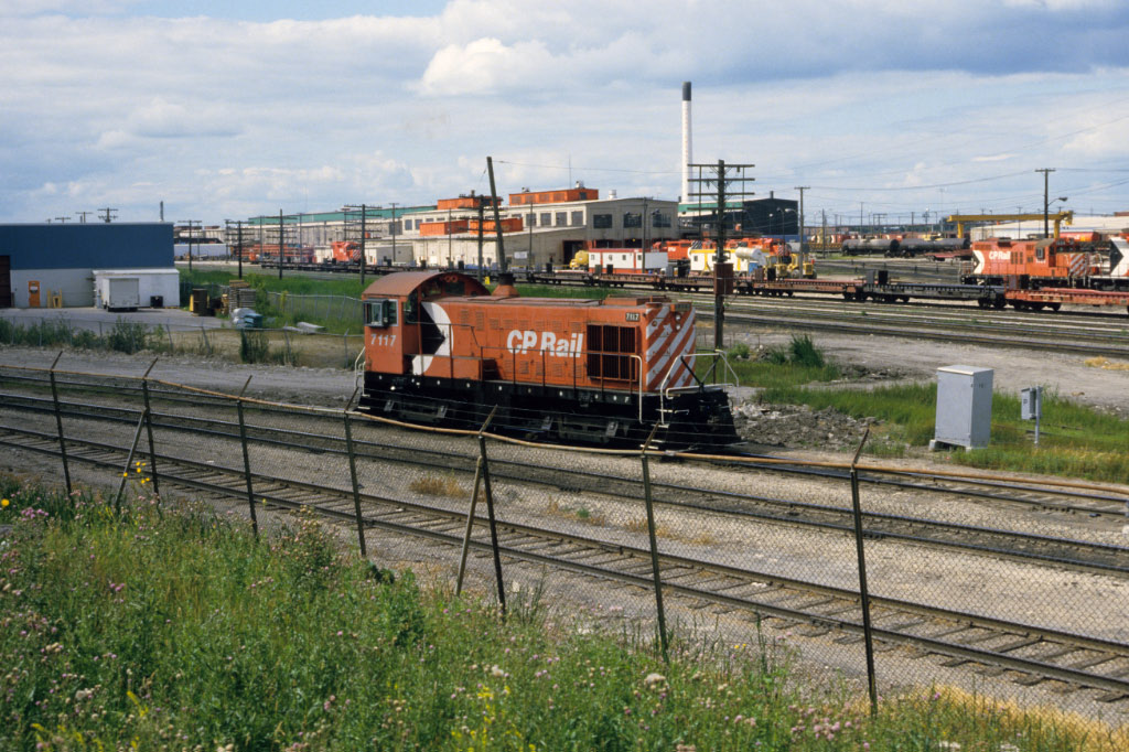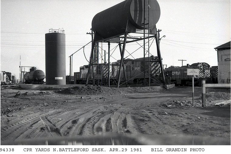 Twin diesel sanding towers at Toronto Yard with famous one-of-a-kind 8921. 4/22/1980 Clayton Langstaff