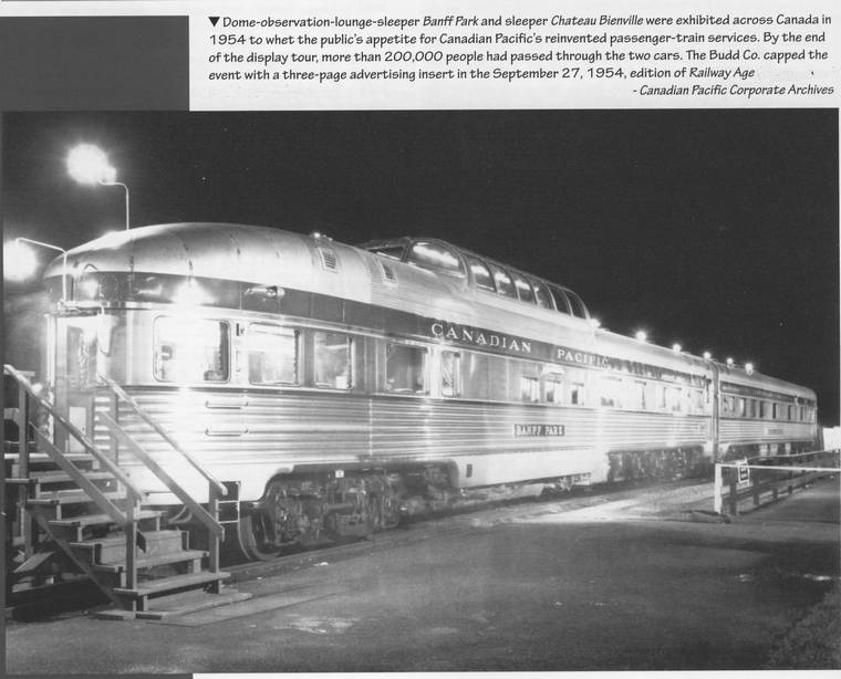 Canadian Pacific Railway Display of Budd stainless steel equipment in advance of service starting.