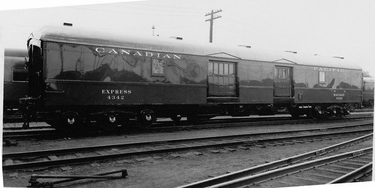 4342 Baggage and Express car. (4300-4347 48 cars built 1914-1919) 70 foot. Built 1919