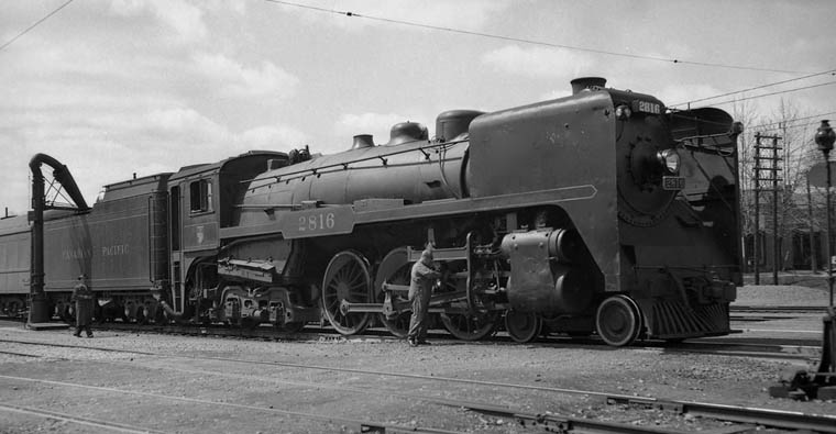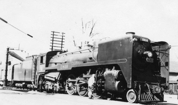 2816 in fast freight service with standard smoke deflectors again. By this time Royal Hudsons were replacing older H-1's in passenger service. Bill Paul/L.B.Chapman Collection