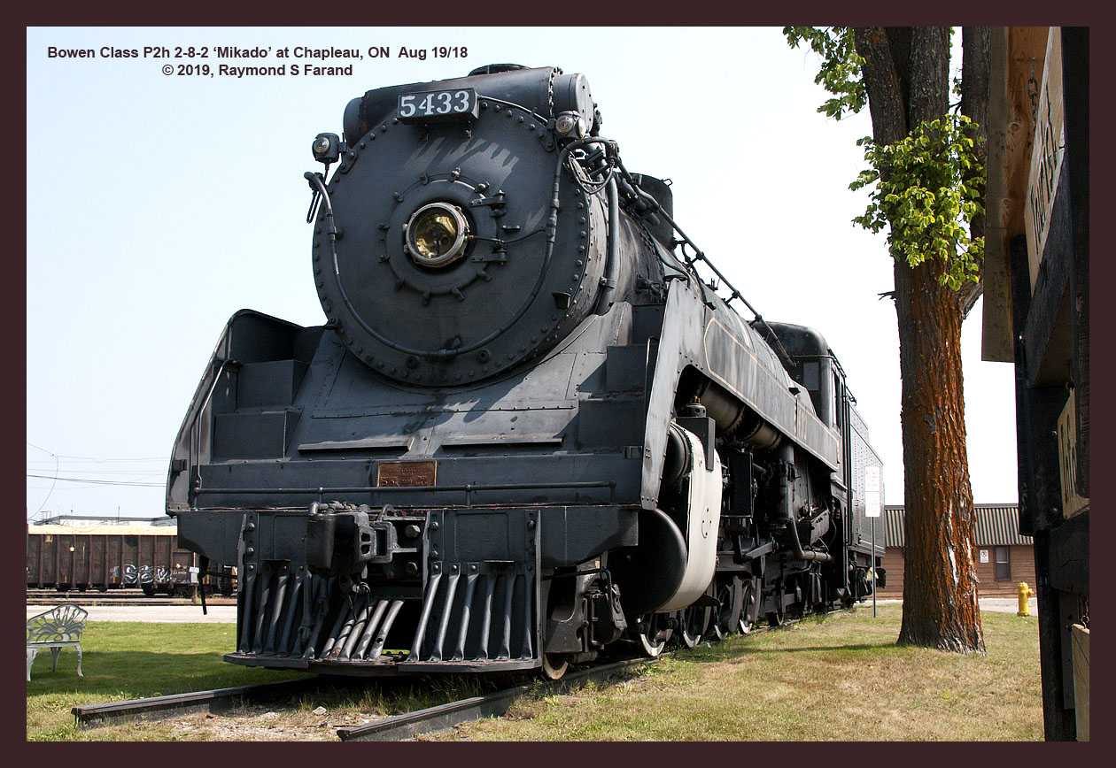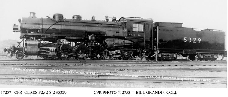 Canadian Pacific Railway This class differed greatly in appearance and specifications between sub-classes of 174 locomotives that were built by the CPR, CLC and MLW between 1919 and 1948. Beginning with P2e sub-class 5360 one-piece cast bed and a multiple throttle were major improvements. The most noticeable difference in appearance came with the introduction of semi-streamlined engines as in other classes that distinguished CPR power. P2g 5405 was the first such engine built July 1940 by Montreal Locomotive Works. Carrying 275 lbs. pressure and counter-balanced for 65 mph compared to earlier sub-classes with 200 or 250 lbs and 50 mph. These P2 class 2-8-2's were very capable and used across most of the system in freight and passenger service. CLC and MLW would continue building these engines until MLW turned out 5473 in October of 1948.