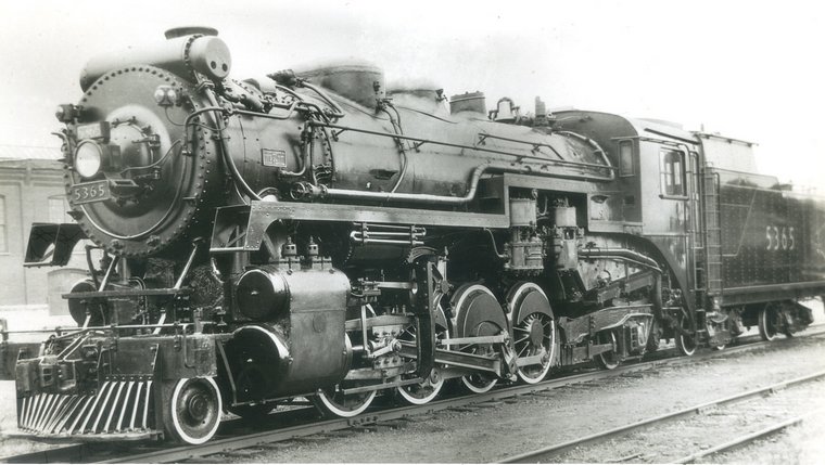 67646 11/1928 5405-5473 69 engines built 1940-1948 by CLC and MLW. Cyl. 22" x 32" Drv. 63" Press. 275 lbs. t.e. 58% These were semi-streamlined modern engines of a greatly