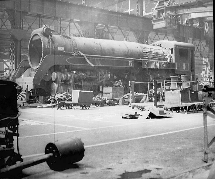 54x2 in an erecting shop receiving major repairs. Number on smoke box appears to be 5442.