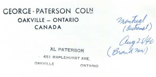 5413 brand new! MLW 69283 8/1940 Outremont August 25, 1940 Al Paterson/Bud Laws Collection