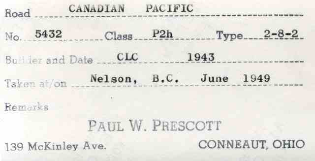 Last P2g 5436 Calgary September 28,1949 Arthur B. Johnson/Bud Laws Collection
