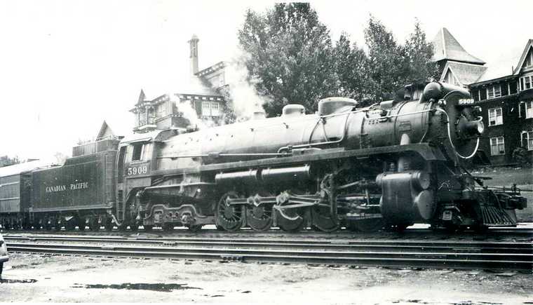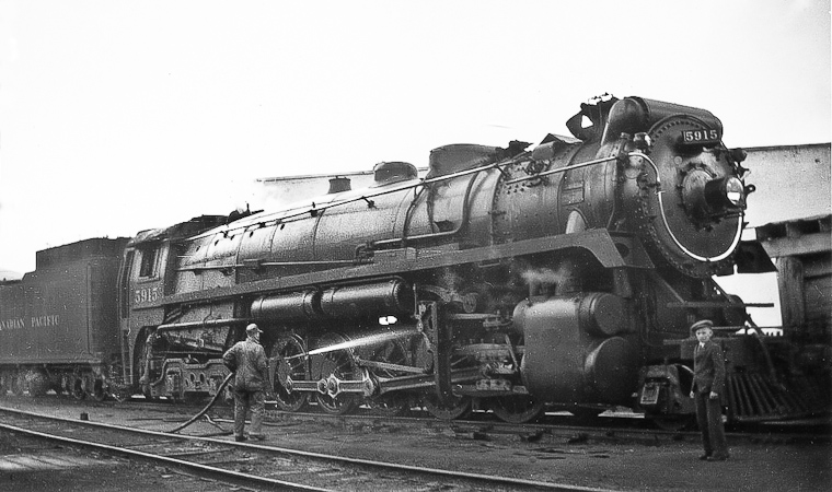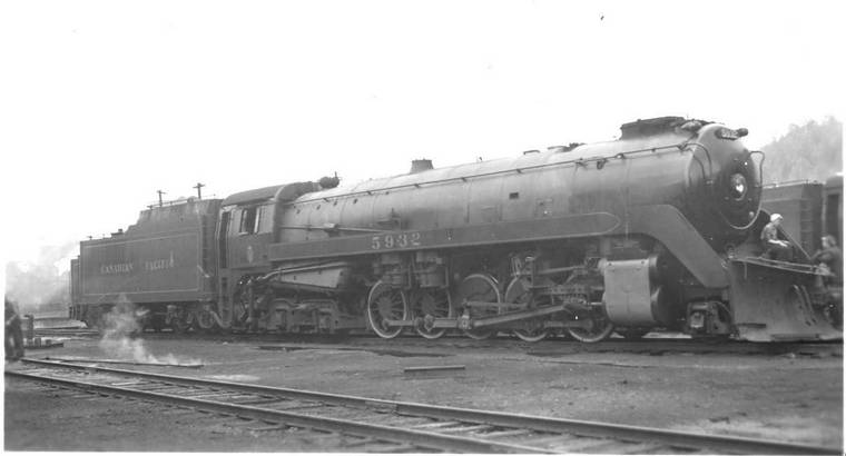 5932 on the shop track at Revelstoke September 8, 1950 Howard Davis/Bud Laws Collection Note the woman talking with another