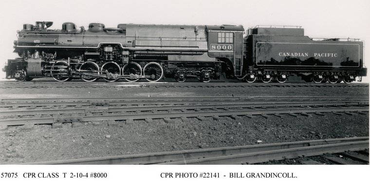 T4a 8000 one-of-a-kind experimental three cylinder high pressure boiler 2-10-4. CPR 5/1931 Cyl. 15 1/2" x 28" and 24" x 30" Drv. 63" Press. 850 lbs. and 250 lbs. t.e 83% Oil 4, 100 gals. water 11,500 gals. Retired 12/23/1936 Scrapped 12/1940