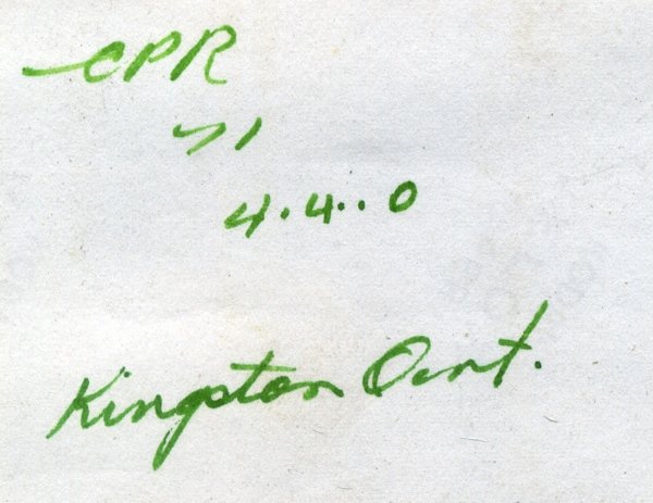 C.P.R. 1 Countess of Dufferin Baldwin 2660 January 1872. Preserved in Winnipeg.