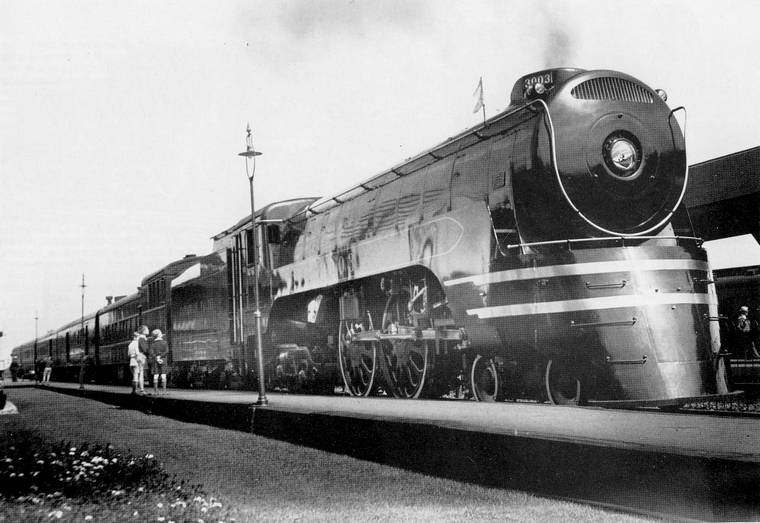 4-4-4 No. 3003, pulling a train composed of dynamometer car 62, mail/express