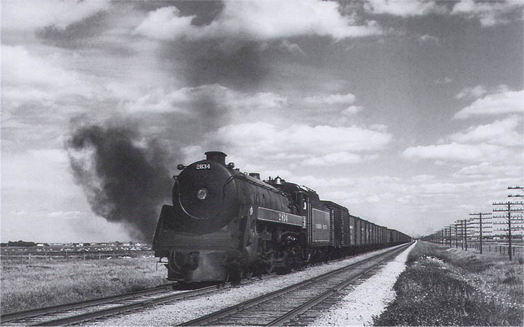 2837 No.5 The Dominion westbound at Carberry, Manitoba. April 28, 1952 Doug Phillips Only a few of these cars were through from the east,