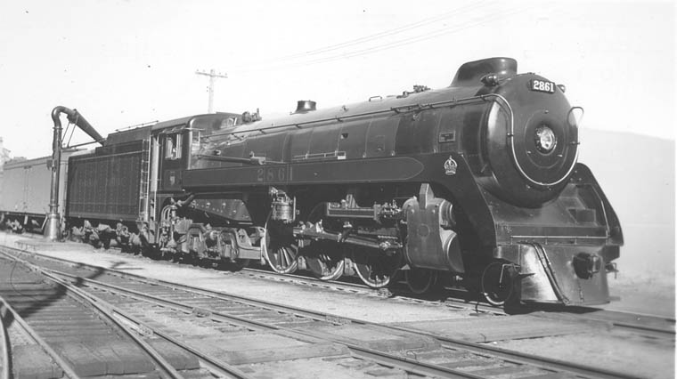 2859 taking water at unknown location c.1940's Bud Laws Collection Note: Only the H1e sub-class 2860-2864 (last Royal Hudsons) built MLW June 1940 were built new as oil-fired.