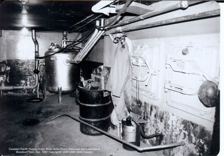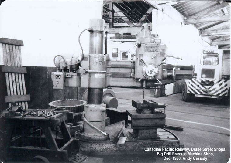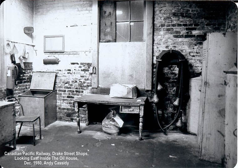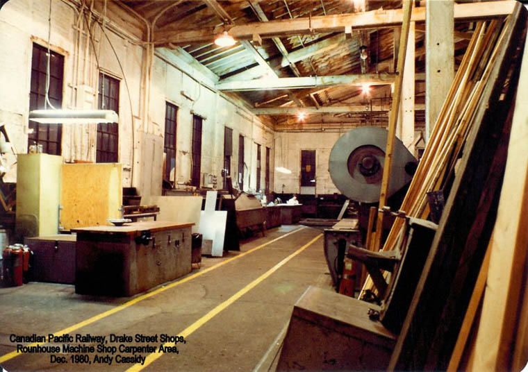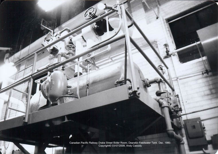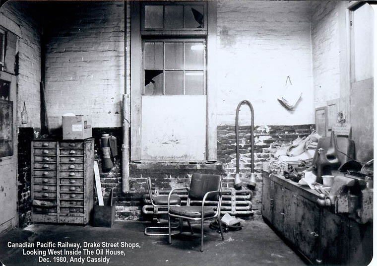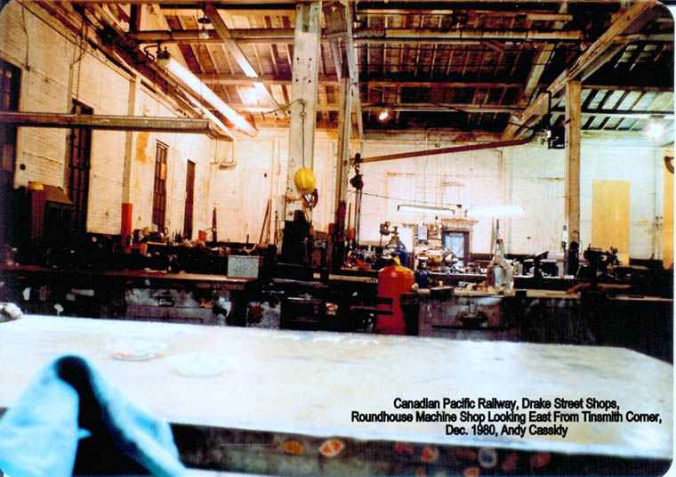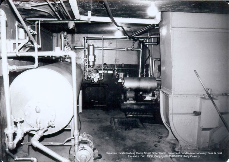 These three shots are of the Compressor Room and the equipment therein. This Canadian Ingersol Rand compressor ran flawlessly for years. It had a 100 HP GE synchronous motor operating it. When this thing was pumping you could hear it all around the shop. Never ran low on air that I can remember. As opposed to the same compressor that was in place at Coquitlam but run by a 100 HP Westinghouse Motor that was constantly giving trouble. I chalked this up to the physical size difference between the two motors. The GE was considerably larger in every aspect. So I guess the Westinghouse Engineers figured cheaper = better, but that was not the case. In any event, this particular machine ended up with a second career for many years after at the BC Rail Steam Shop where the Royal Hudson, CP 2860, was maintained till the BC government shut down the operation a number of years ago. Not sure where it is now.?