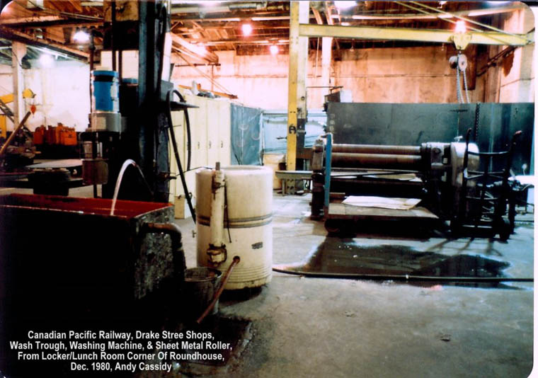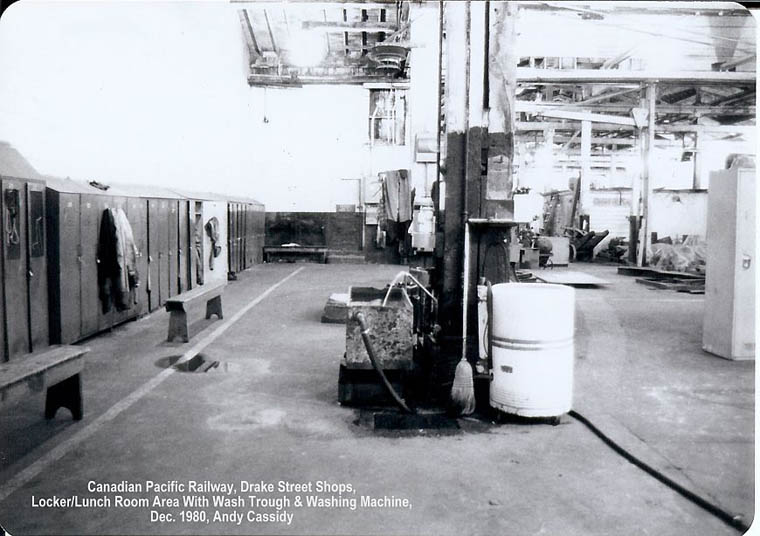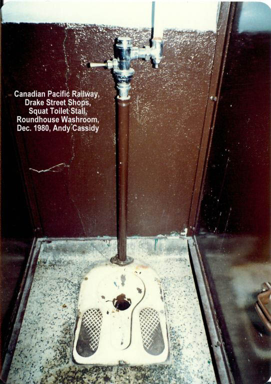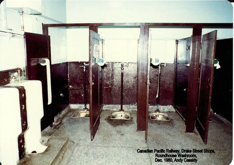 These two photos are ones I had to take, as nobody would believe these were our facilities! These Turkish, or squat toilets as we called them, kept guys from wasting time. No sitting around reading newspapers on these thing. On day we had a new machinist working at the shop and he had to go. Well, one of the other fellows goes into the washroom only to find the first guy didnt understand the concept of these toilets, as he was sitting on the floor with his legs sticking out from under the cubicle door! LOL! I used to go over to the coach yard, as they had conventional sit-down toilets. The only down side to them was they had no privacy. Just a modesty panel between each toilet, and a panel in front. This was so the foreman could walk in and walk the line of toilets to see if anybody was sitting there reading the newspaper. How things have changed.