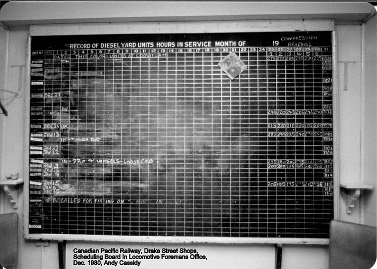 Scheduling Board mentioned earlier, but at this time it is in the new office. This board showed all the assigned units, locations, dates due inspections, etc. On the far right you can see we had six of the columns assigned to engine compression readings. The only two Baldwins left were the 7070 & 7072. The 7072 was assigned to the Island at this time according to the note.