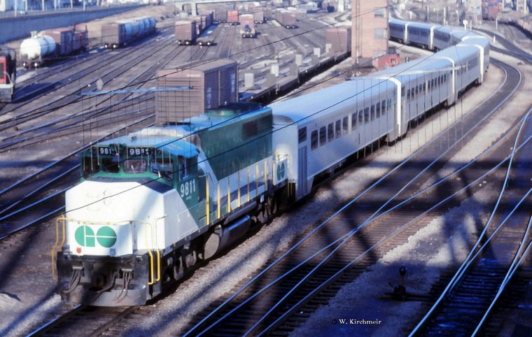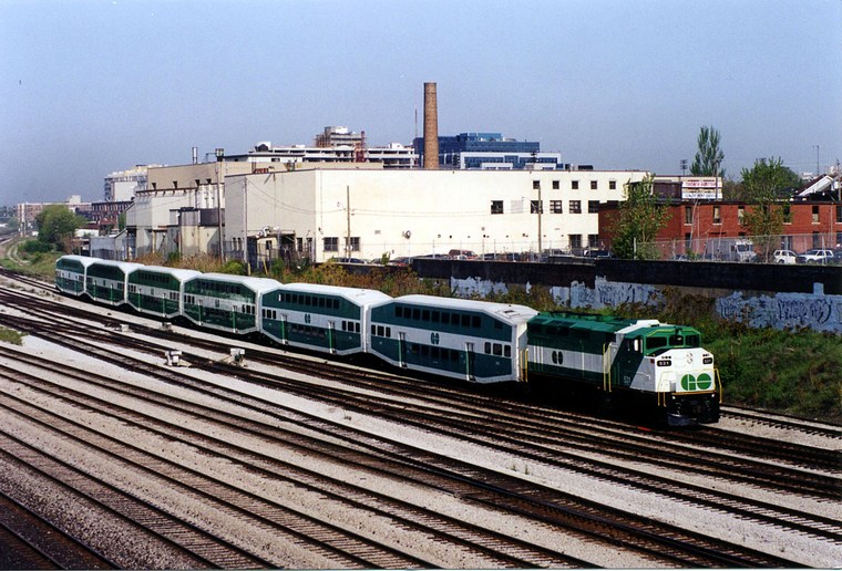 534 F59PH Stouffville 6/11/1992 Joseph Testagrose Collection Union Station Rail Corridor USRC Trackage owned since 2000 by GO. Note: Union Station owned since 2000 by City of Toronto.