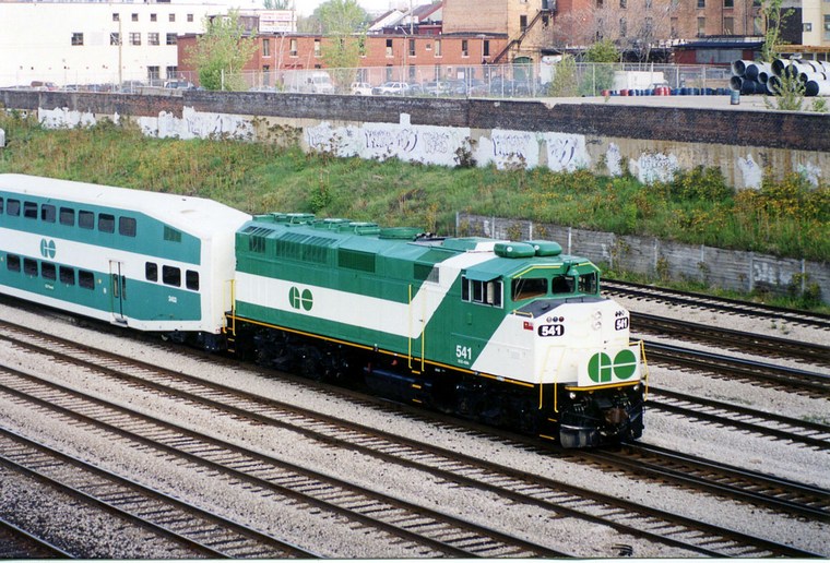 Closer look at a F59PH 541 approaching Bathurst Street. May 2003 Paul McGrane Collection