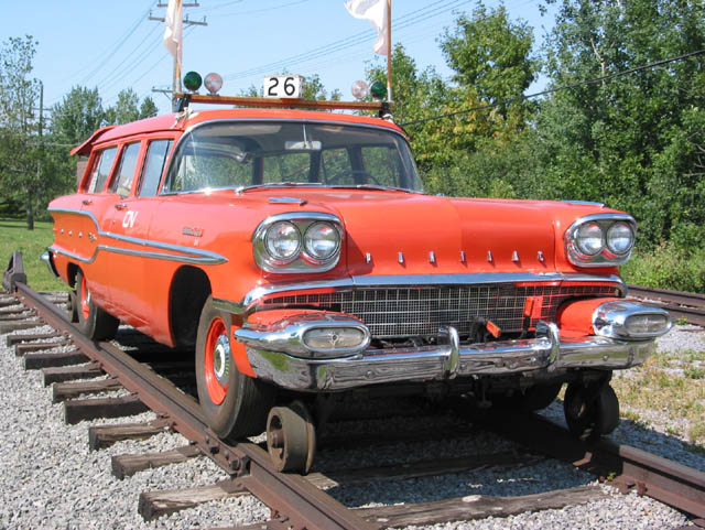 This beautifully restored Hy-Rail vehicle is a 1958 Pontiac