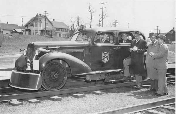M243 in Hochelaga Yard, Montreal. September 10, 1949 E.A.Toohey Collection Inspection cars were automobiles used by high ranking company railway officers to conduct inspections of the railway's property. They were equipped with steel wheels to run on track and could not be used on roads, unlike hi-rail vehicles used in recent years that can do both. They were usually equipped with a turntable. These inspections always brought a certain amount of trepidation with their passing as railway officials often reined terror upon hapless lower ranking officials and employees for anything that didn't please them. Monthly inspections by the Divisional General Superintendent similarly were preceded by much concern on the part of lesser mortals. These inspections were conducted using the General Superintendent's business car attached to the rear of a passenger or mixed train if available, otherwise a freight train would be used.