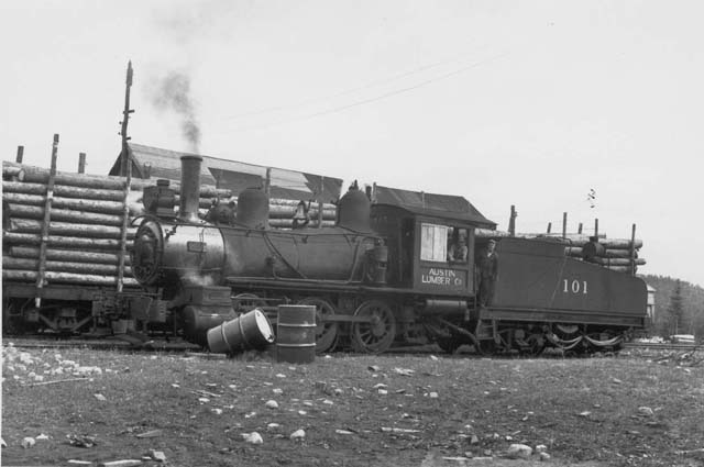 Three above photos by R.A.C.Richardson/Brian Westhouse Collection Austin Lumber was not a logging railway in the proper sense of the word but, it did handle logs on its short non-common carrier railway to deliver them to their mill in Dalton Mills. Ties for the CPR Brian Westhouse In the 1890s James McNeice Austin, a Chapleau general merchant, took tie cutting and delivery contracts from the CPR. Hand hewn axe-ties were cut by permit at specified areas along the CPR, like Ridout, Nemegos, Como and Pardee. Cutting was done by foremen such as Picard, Bertrand, Latremouille, Beaudry, and Roussy. In those early years the railways would not accept sawn ties, the kerf of the saw left the fibers of the wood exposed and more likely to absorb moisture, causing premature rot.