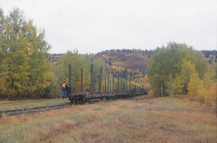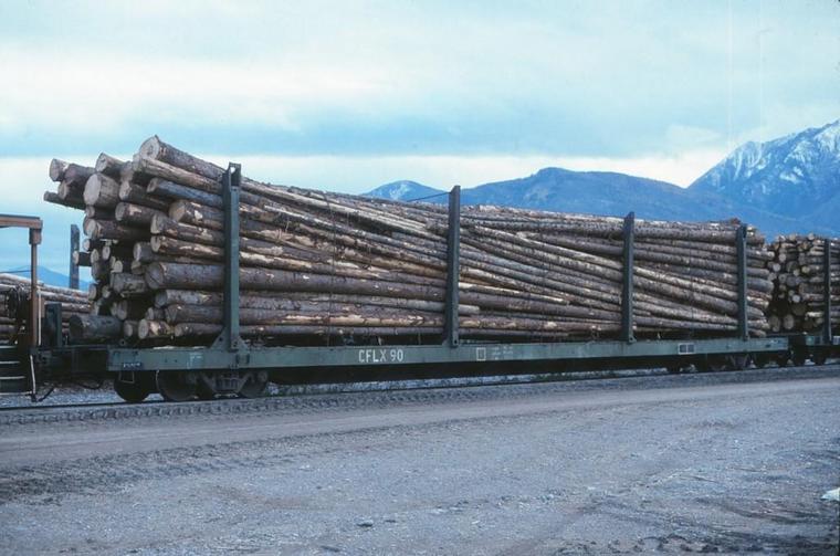 onto a fleet of Crestbrook Forest Industry flat cars for delivery to