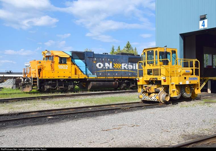 1802 and Whiting Trackmobile at diesel shop. Cochrane 6/23/2018