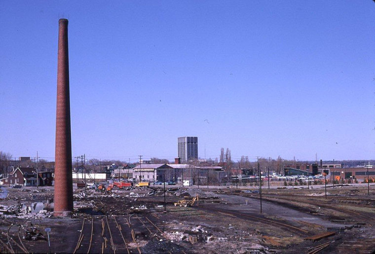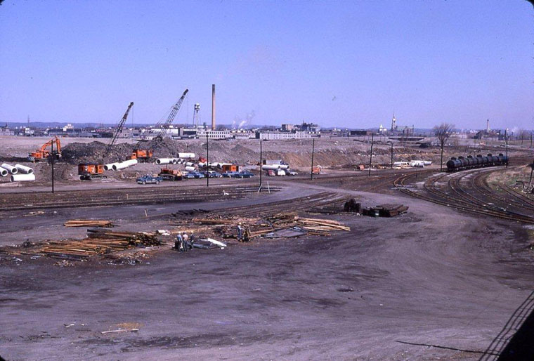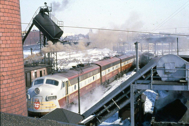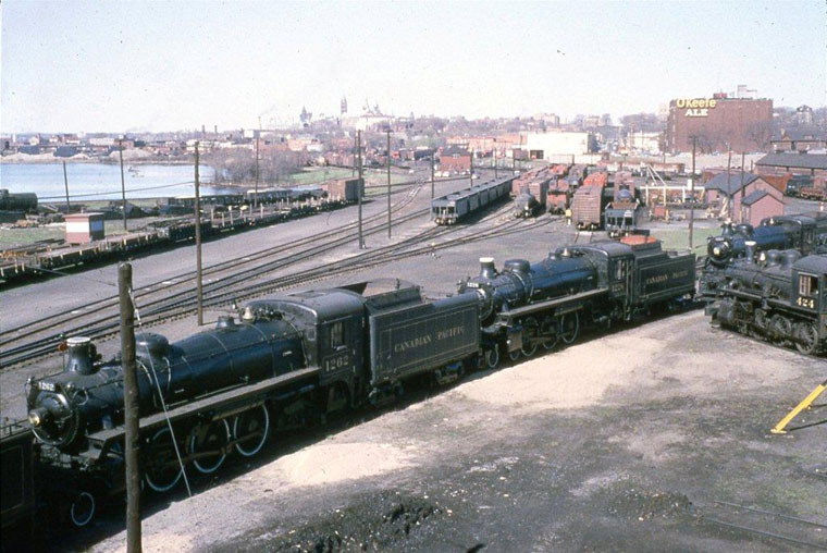 More Changes and The End. Changes came to Ottawa beginning in the early 1950's when the National Capital Commission started on a project to remove tracks from the downtown area. The CNR Renfrew Subdivision went through Ottawa and this was ended by having trains bypass downtown Ottawa on the Beachburg Subdivision. In 1952, CNR abandoned part of the Renfrew Subdivision from Island Park Drive to Nepean Junction, and the Queensway was started, and only completed when old Union closed 7/31/66. Walkely Yard was built for the CNR resulting in the closure of their Bank Street Yard in 1953. New express terminals were built for CN and CP at Alta Vista where a new Union station would also be built allowing the old Union station in downtown Ottawa to be closed. When the new station opened July 31, 1966, CPR passenger trains no longer used the Carleton Place Subdivision, instead using the CNR Beachburg Subdivision, but the NCC mandated that no wheelage was to be paid thereafter. Then the NCC built a new yard with a yardmasters tower to the south of their original yard at Walkley, so CP got the hand-me-down and CN got another new yard. The old CN shop, the north side held 2 units, and the south side was for car repairs. CN got a similar one on the south side, but only room for 2 units or cars therein. Eventually, both CN and CP ended operations there with a new shortline Ottawa Central using it for a while. CP had not been using the roundhouse except for the 2