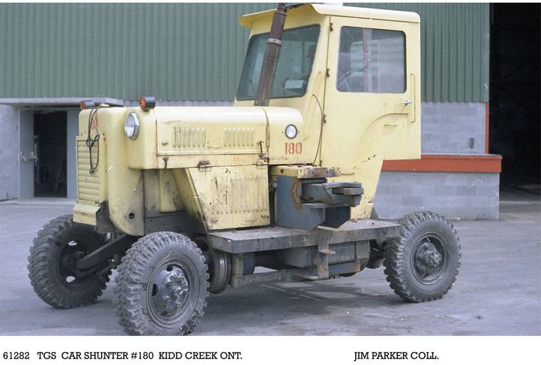 TGS 180 ancient Trackmobile. Note steel wheel crossways behind front tire.