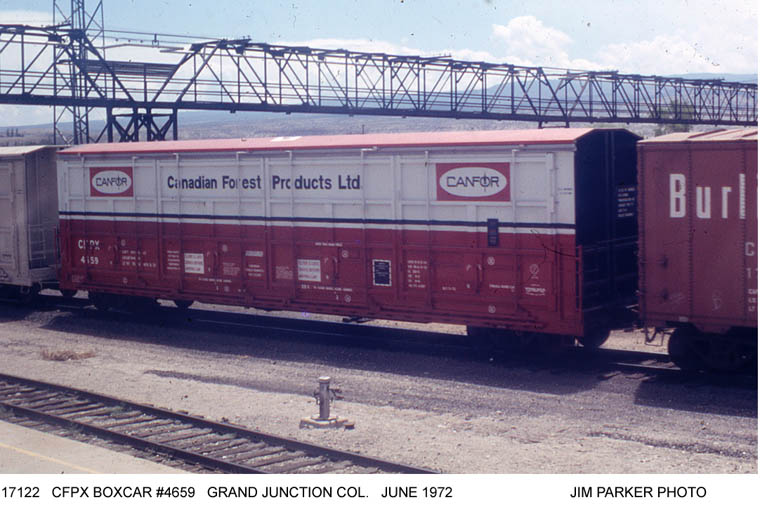 CFPX 4659 All-door box car especially designed for lumber loading. Canpotex Ltd.