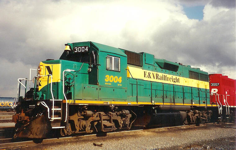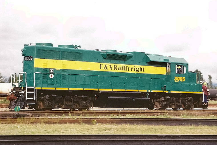 E&N Railfreight 3005 at Coquitlam shop for maintenance. September 8, 1996 (still an internal shortline).